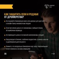 Мы подготовили карточки, в которых рассказываем, что делают дропперы, можно ли случайно стать соучастником преступления и как обезопасить себя и своих близких.