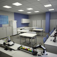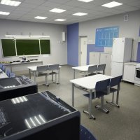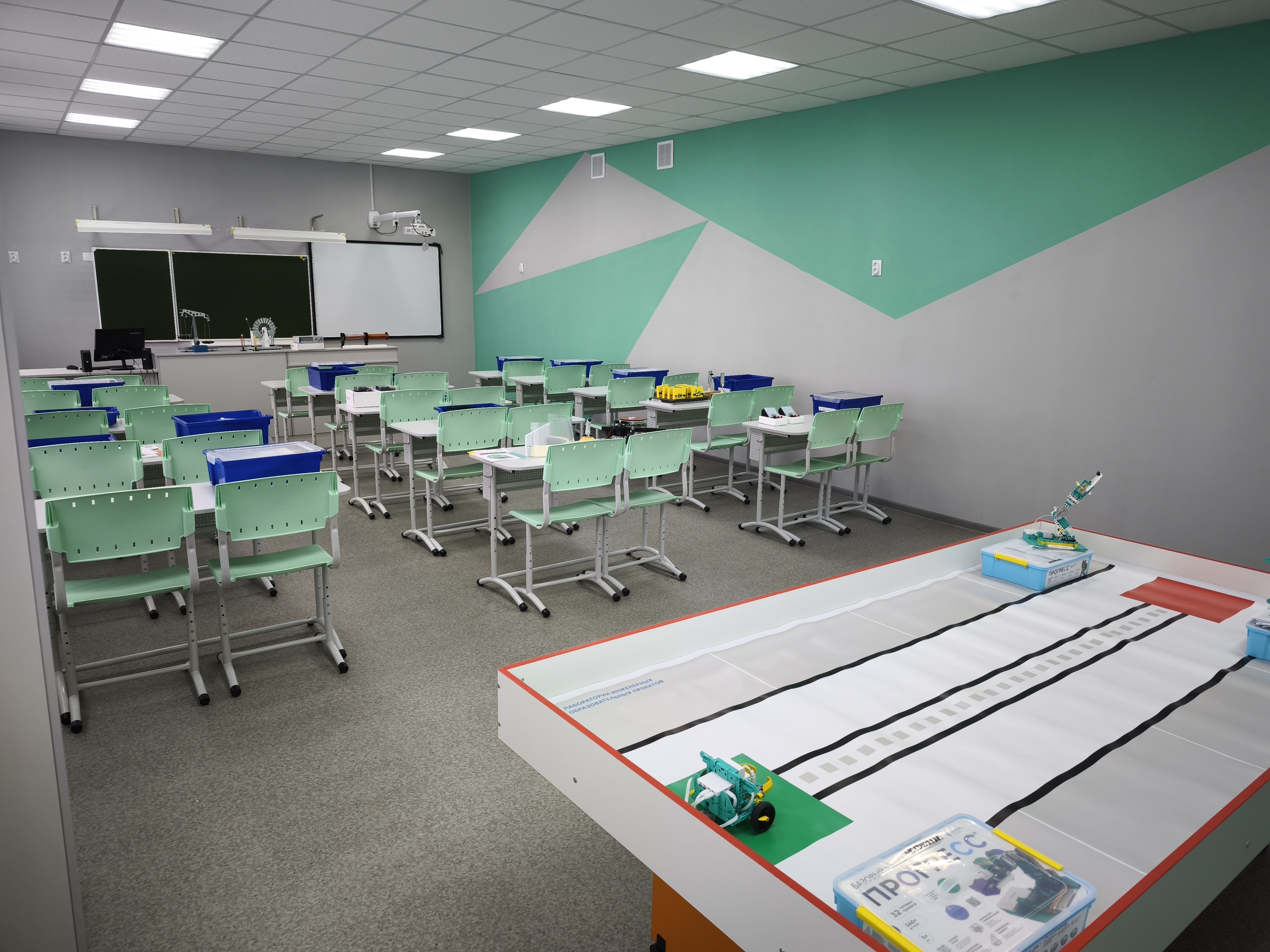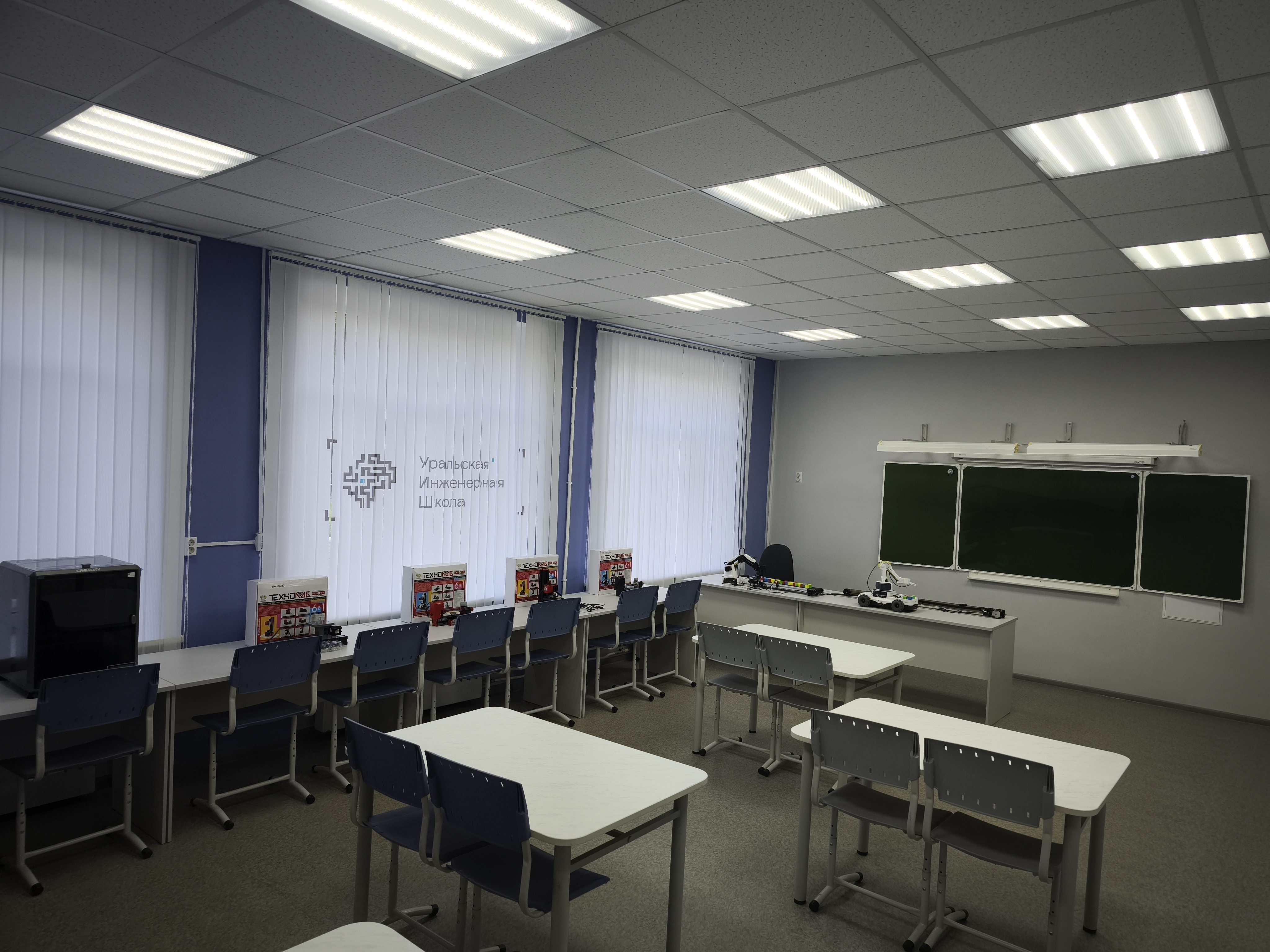 В кабинетах физики, труд (технология) проведены ремонтные работы и закуплена учебная мебель. При обновлении образовательных пространств использовано цветовое решение фирменного стиля проекта «Уральская инженерная школа».